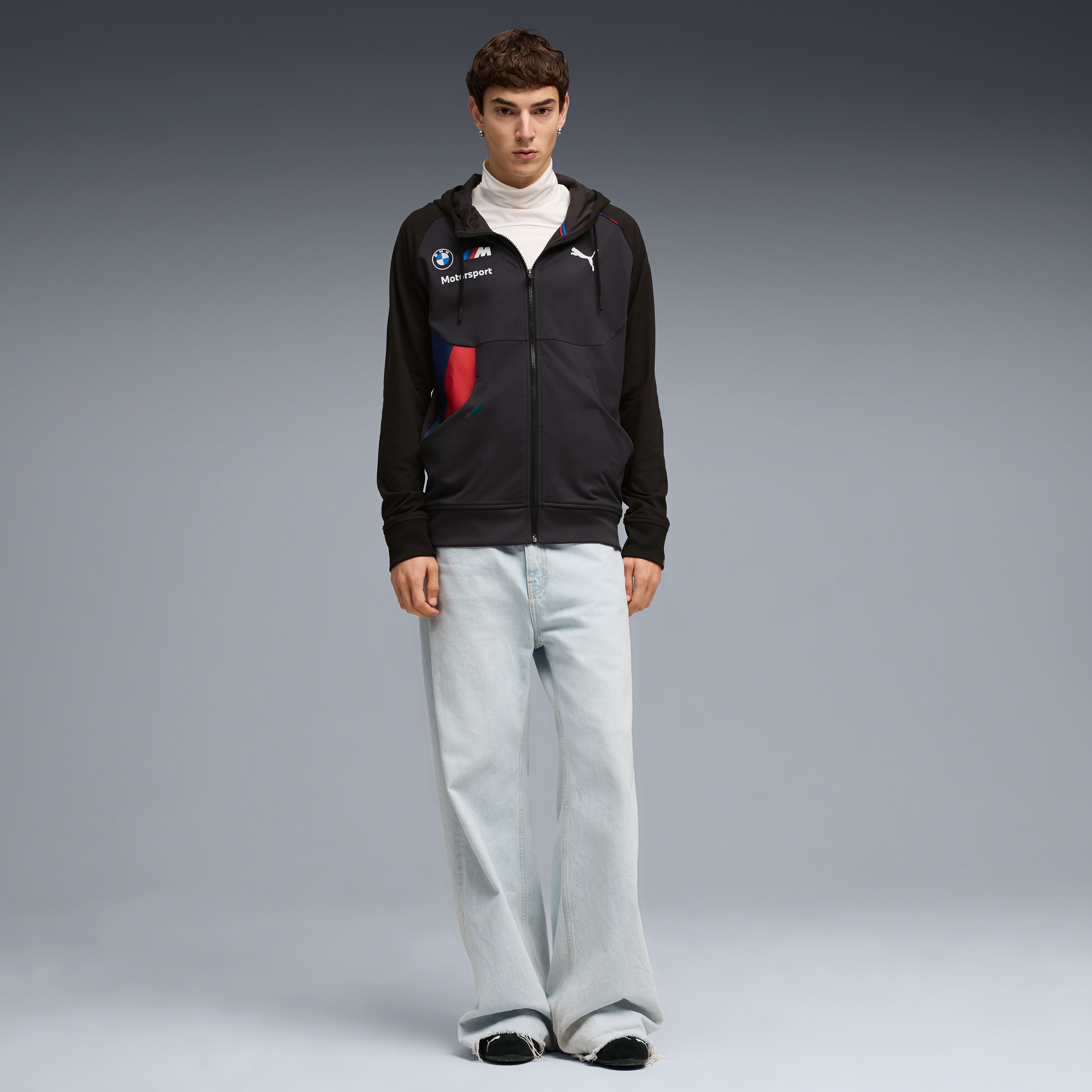 Stay warm in style with the official BMW Motorsport Team 2026 Pumatech Hoodie for men in black. Crafted by PUMA using Pumatech performance fabric, this hoodie blends comfort with motorsport-inspired design.