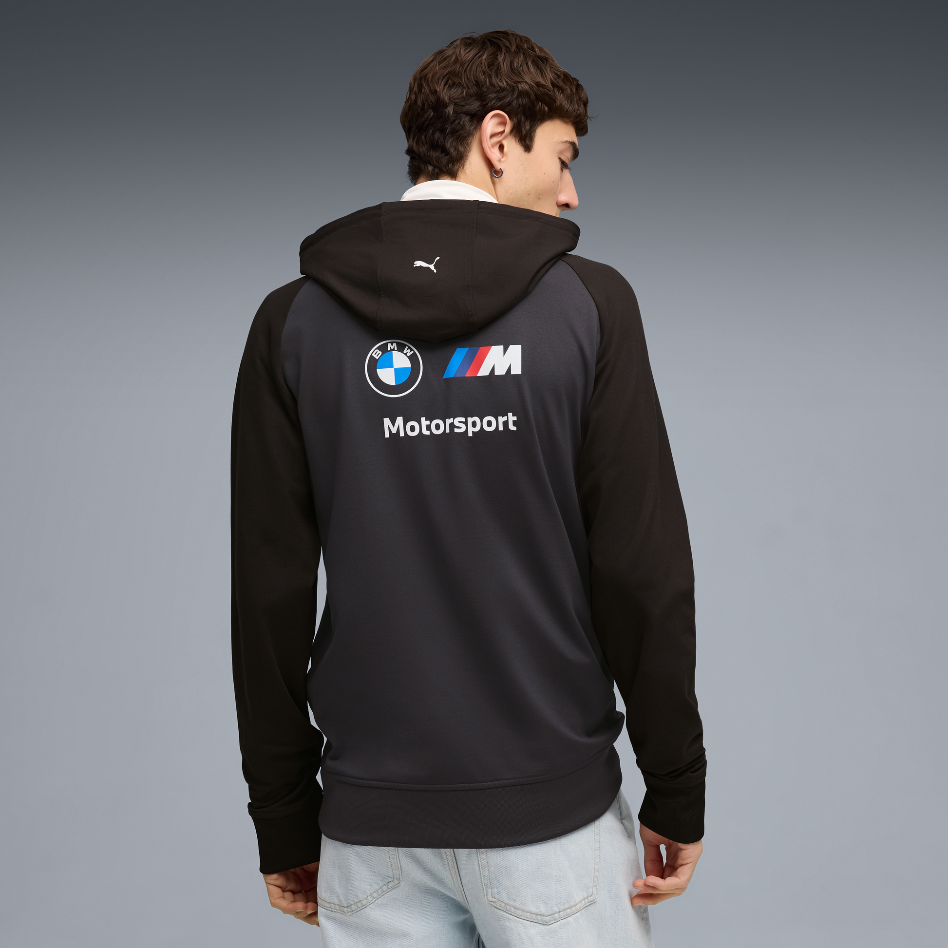 It features bold BMW Motorsport and PUMA branding, a cosy hood, and a modern athletic fit — perfect for race weekends, everyday wear or casual layering.