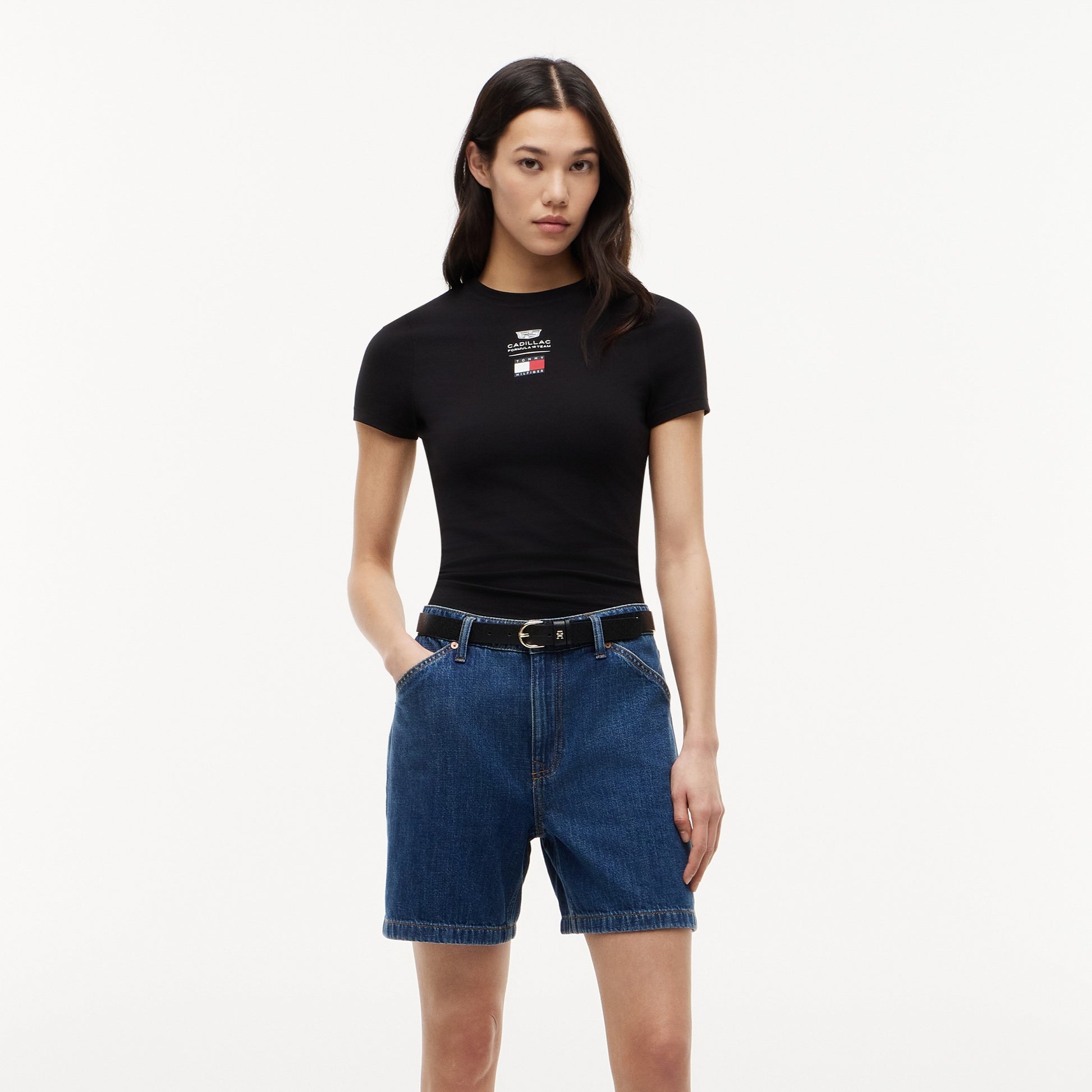 Show your love for racing with the Cadillac F1 x Tommy Hilfiger Logo Baby Tee for Women in sleek black. This premium women’s T-shirt pairs iconic American motorsport branding with a flattering baby-tee silhouette for a stylish, contemporary look.