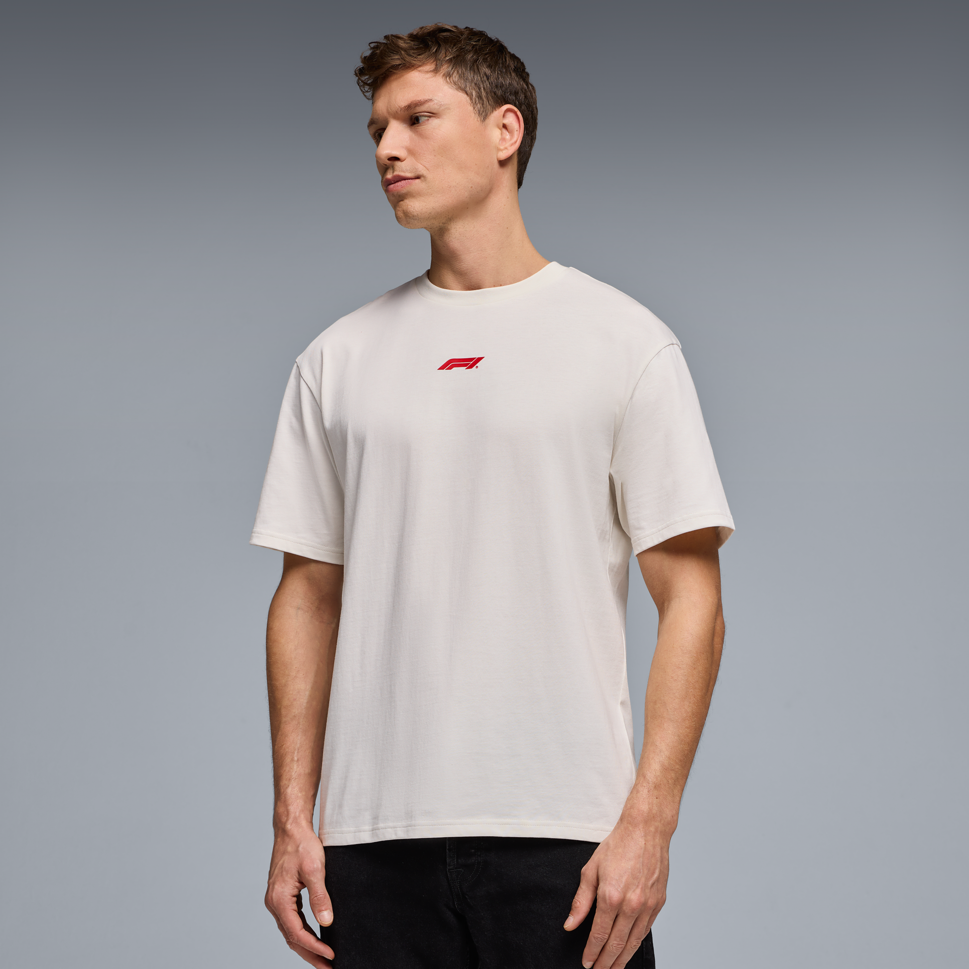 Keep it stylish and comfortable with the F1 Racing Line Tee for men in Cloud Dancer. Featuring a classic crew neck, modern fit, and official F1 branding, this T-shirt is perfect for race days, casual wear, or adding a subtle motorsport-inspired touch to your everyday wardrobe.