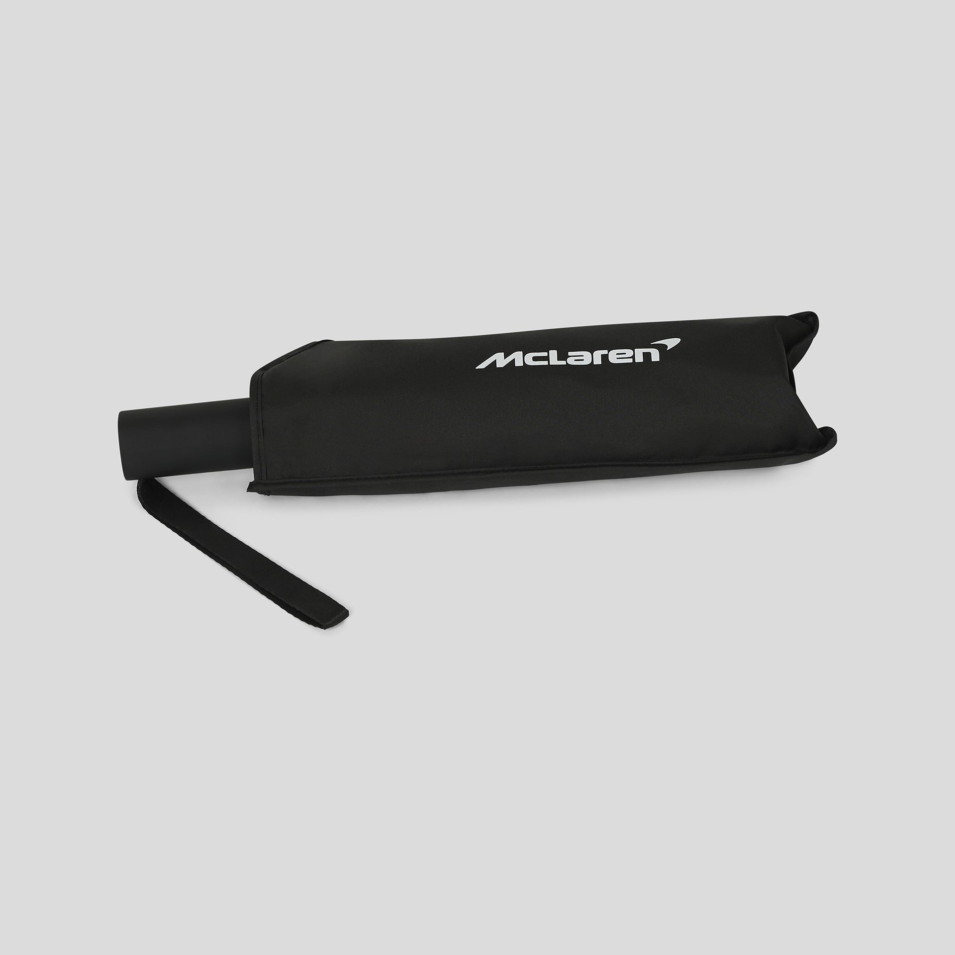 Keep yourself race ready with this McLaren Automotive Telescopic Umbrella. In a sleek black and minimal branding this umbrella is for those who like the sport but don't want to shout about it. Take this piece wherever you go, with a compact size and unobtrusive frame, this umbrella is ready for action.