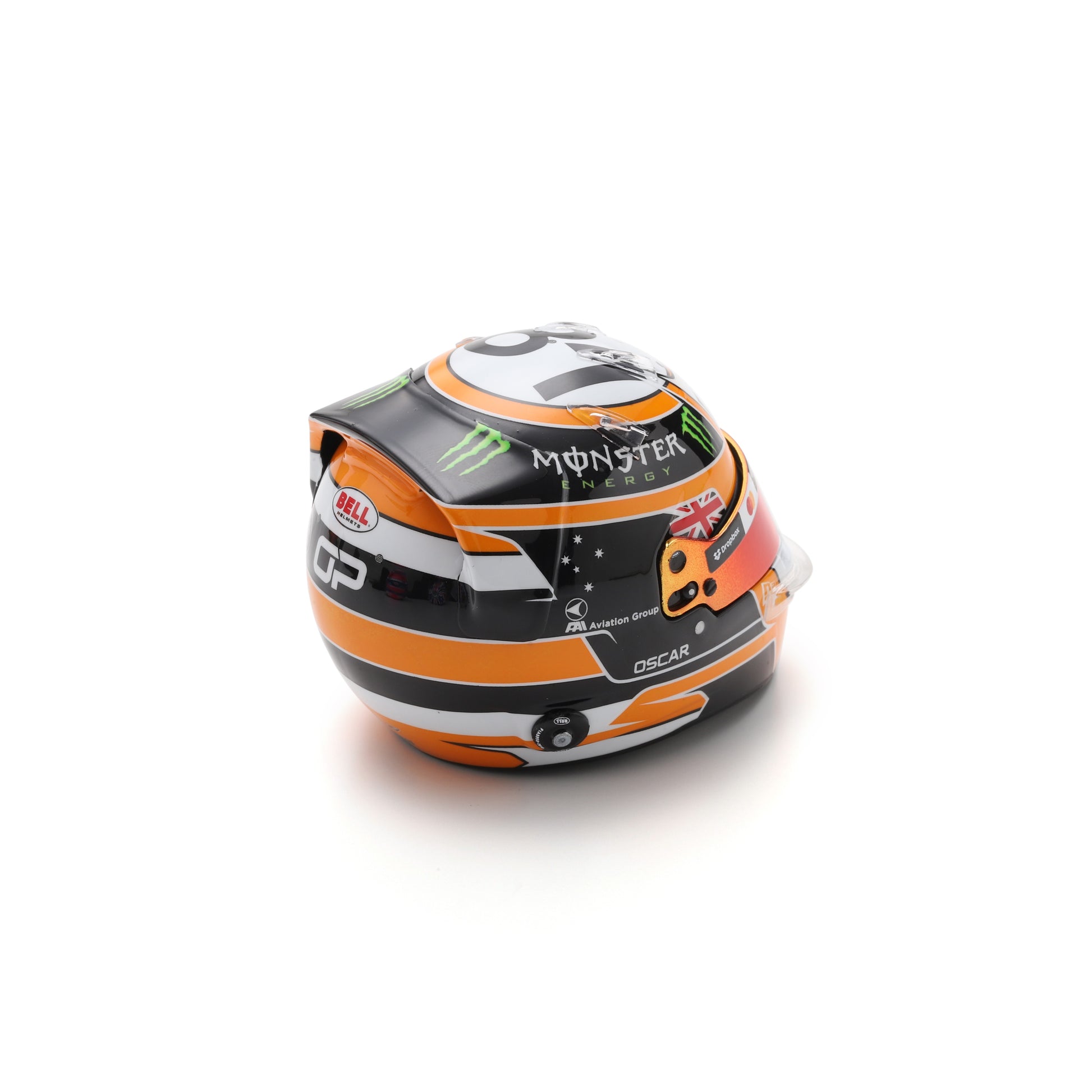 Finished in McLaren’s signature papaya tones with detailed sponsor branding and Piastri’s distinctive design elements, this model captures the look and feel of his Monaco race helmet with impressive accuracy. From the visor detailing to the intricate graphics, it’s a standout piece for collectors and McLaren fans alike.