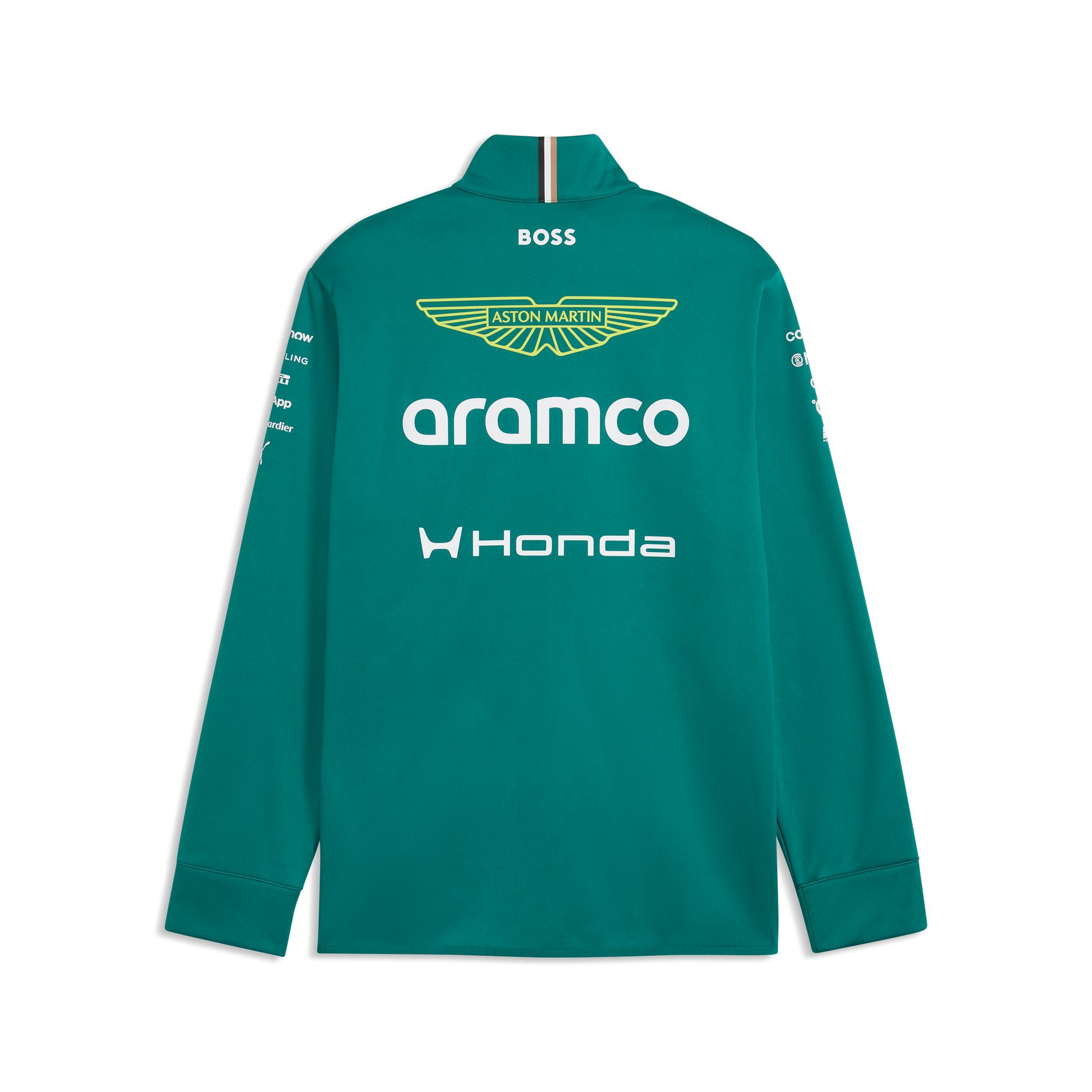 Support the Aston Martin Aramco Formula One® Team in style with the official Aston Martin F1 Team 2026 Softshell Jacket for Men. Finished in the signature Green Lux colour, this Softshell Jacket features authentic team branding inspired by the 2026 season, delivering a smart and professional look for all fans of the Silverstone based team.
