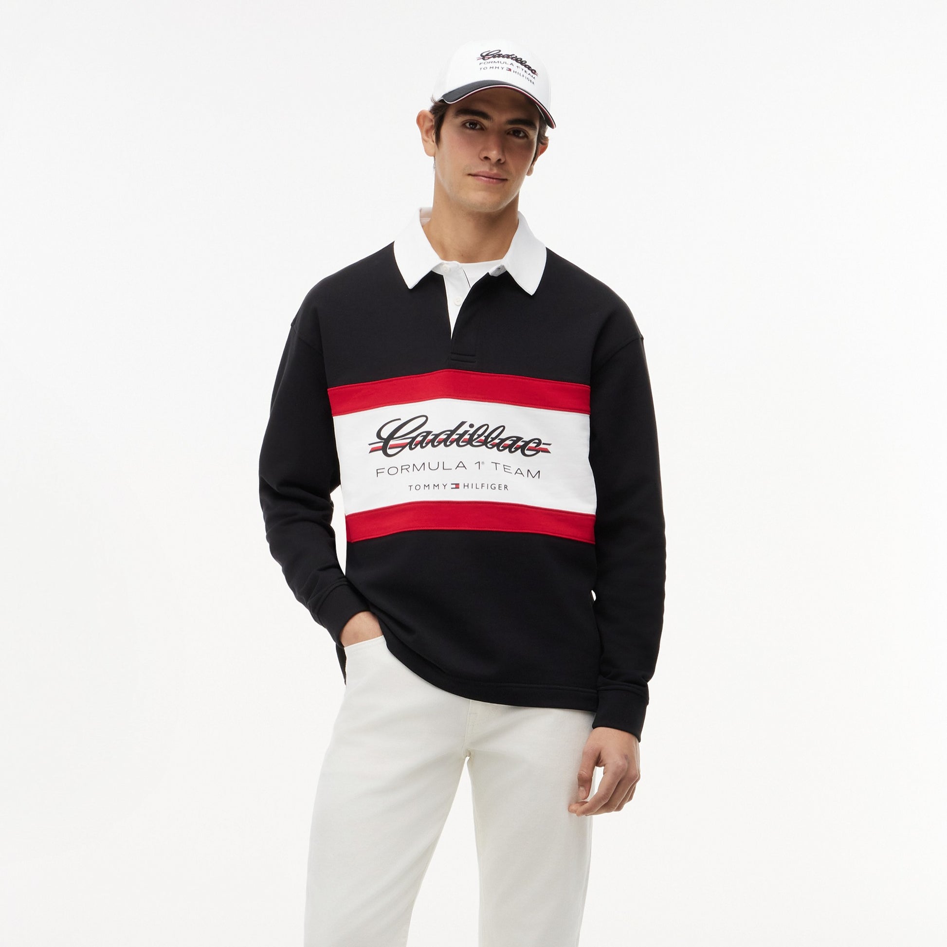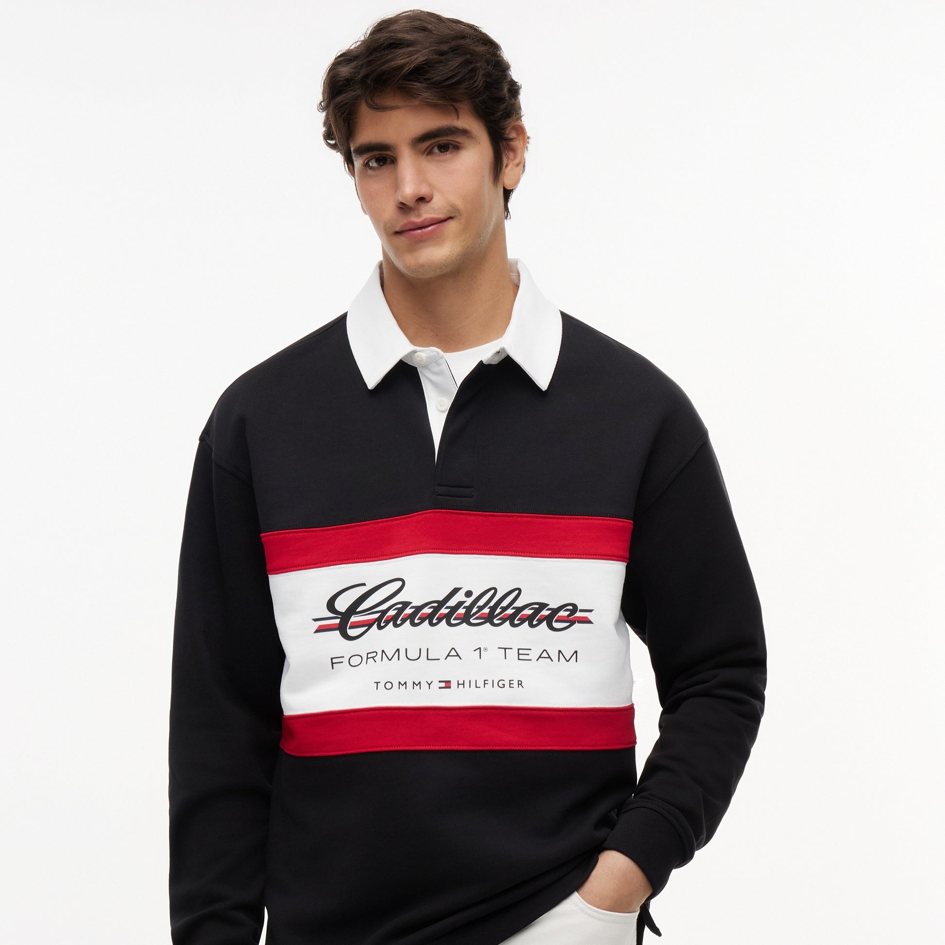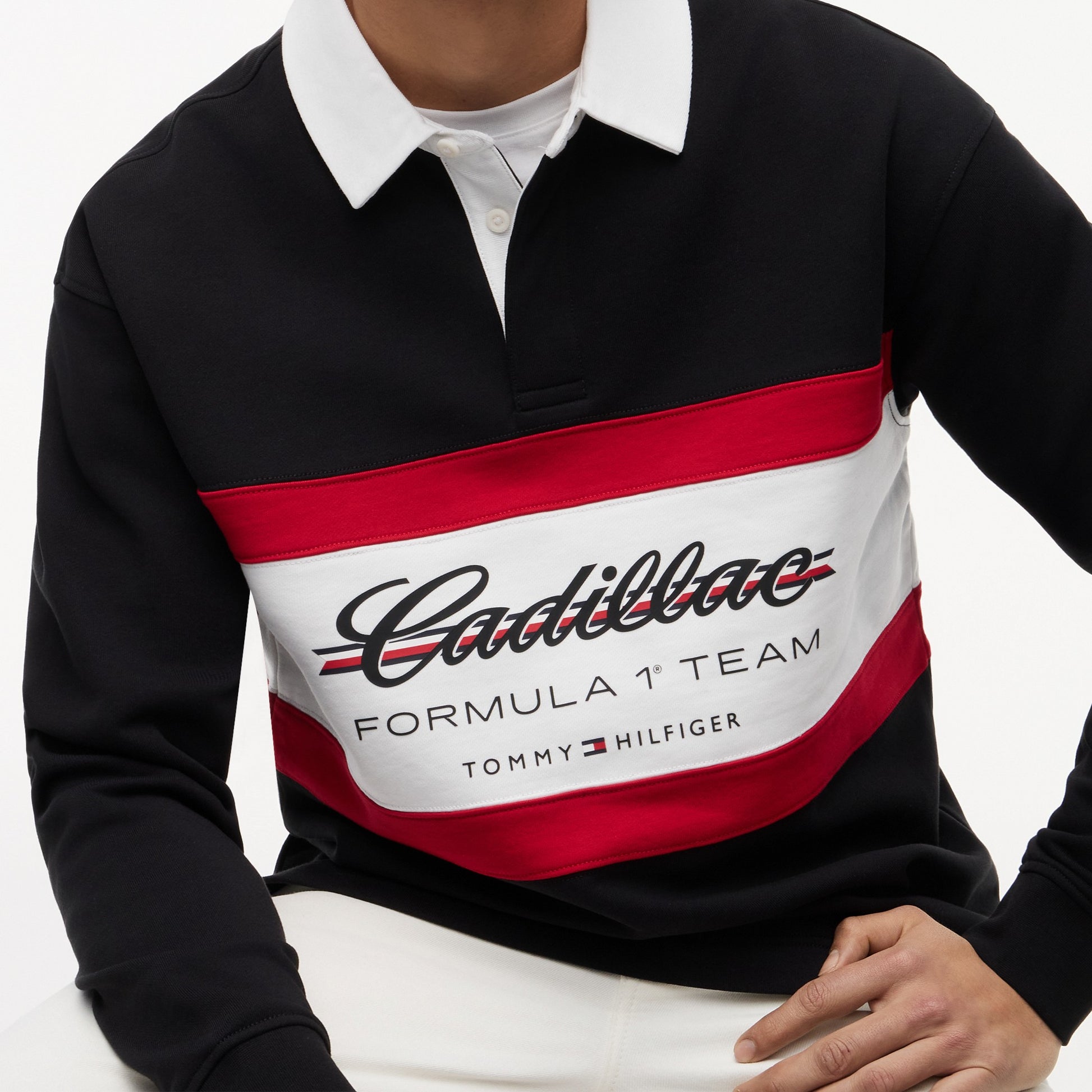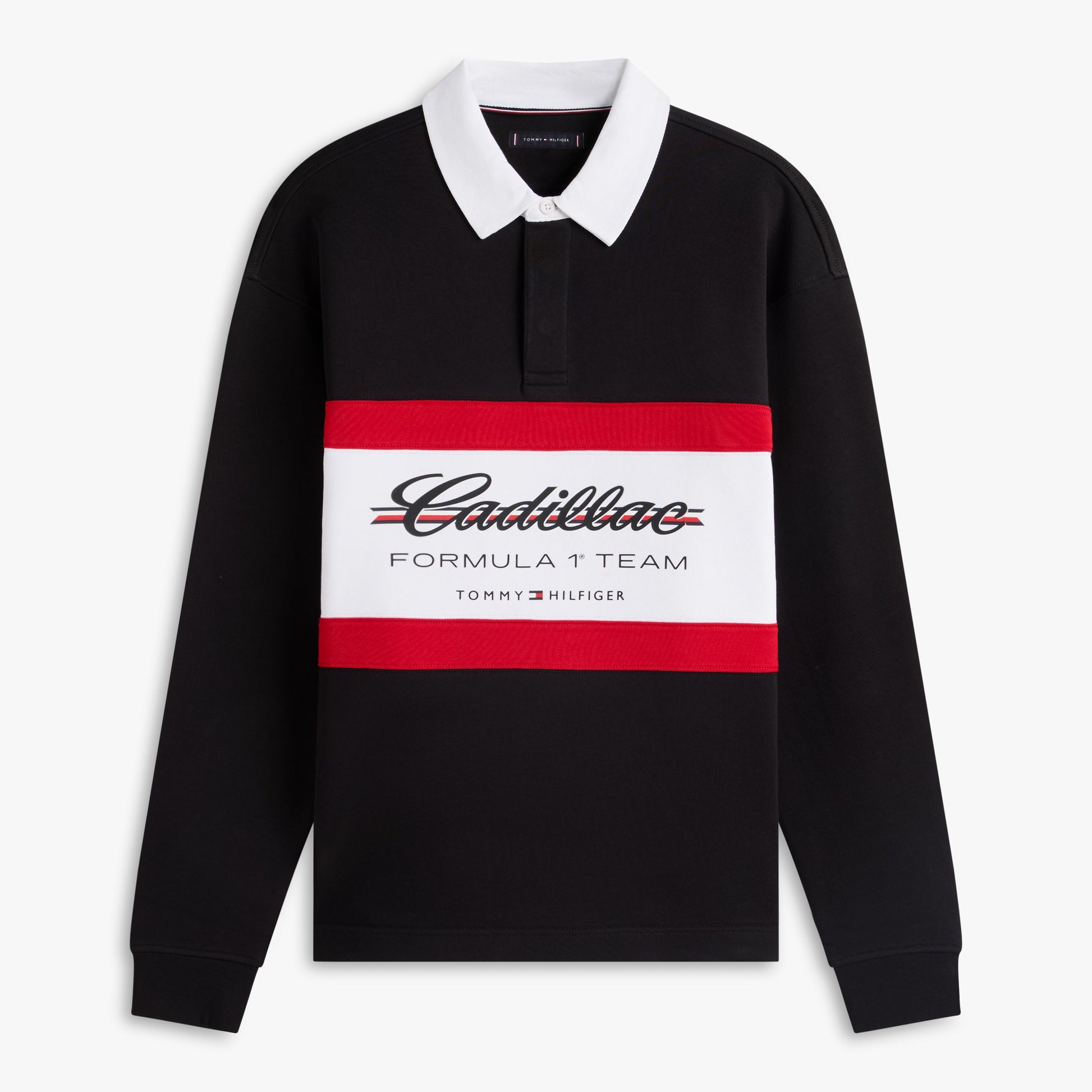 Show your motorsport style with the Cadillac F1 x Tommy Hilfiger Panelled Rugby for Men in classic black. This premium men’s rugby shirt combines bold panelled design with iconic Tommy Hilfiger x Cadillac Formula 1 Team branding for a standout athletic look.