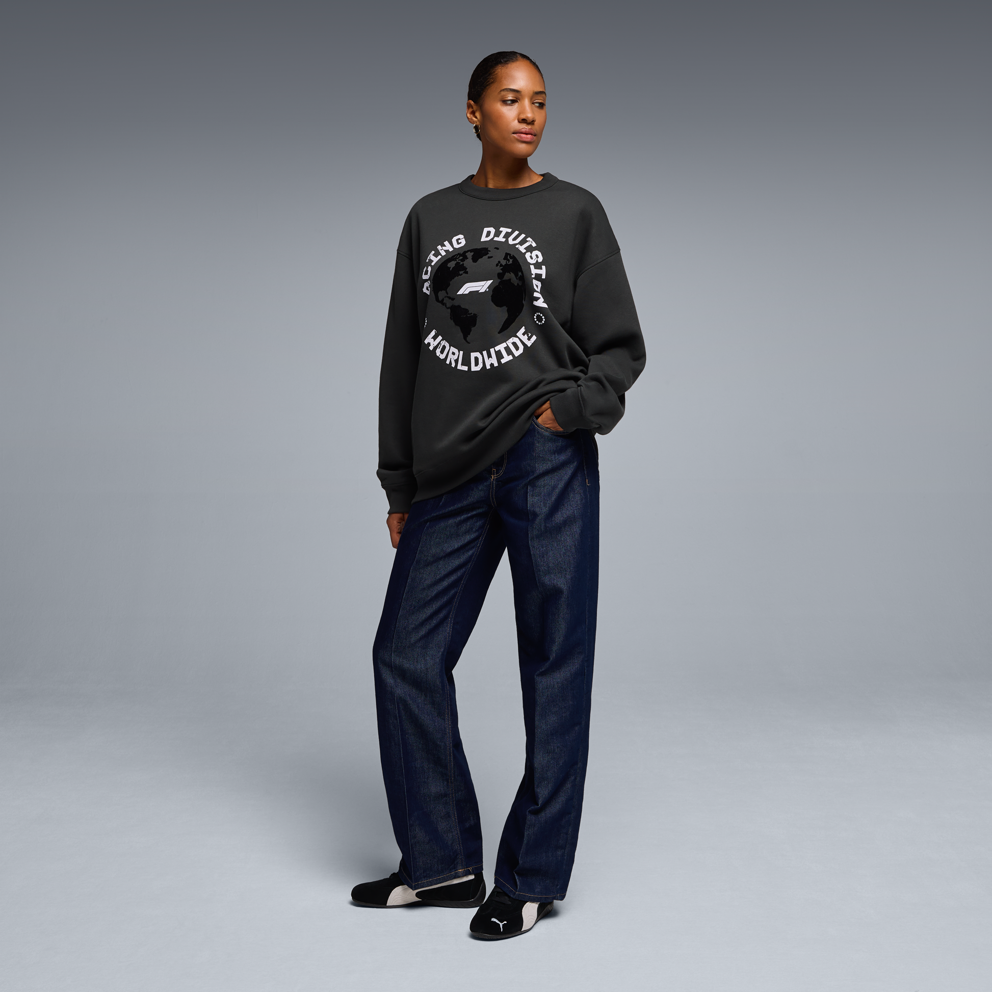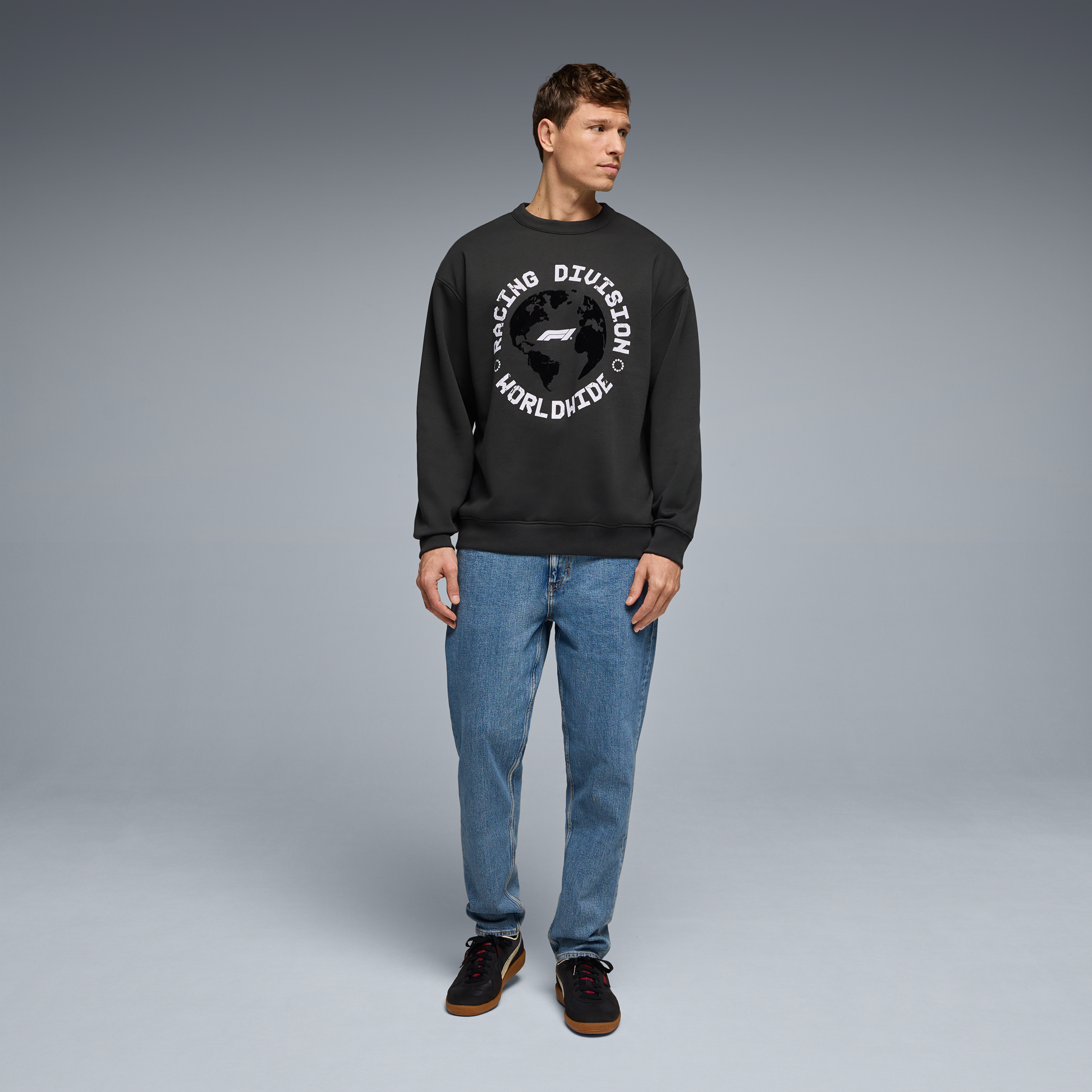 Keep it clean and classic with the F1 Racing Division Worldwide Graphic Crew Shirt for men in Pirate Black. Featuring official F1 logo branding and a comfortable everyday fit, this Crew top is ideal for race weekends, casual wear, or showing your love for Formula 1 all year round.