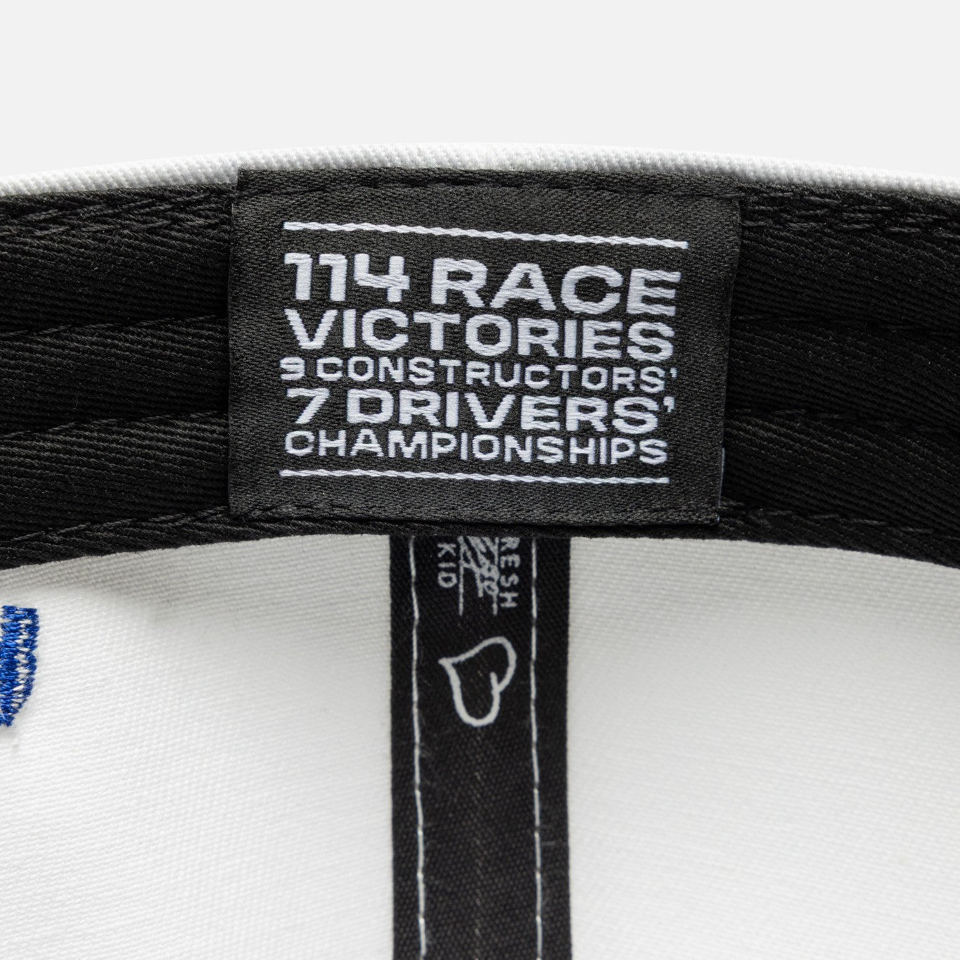 This bold design features an embroidered Blue/White Williams's logo on the front, embroidered Fresh Ego Kid x Williams Racing logos on the side and a Fresh Ego Kid heart on the back. A great way to support Alex Albon or Carlos Sainz!