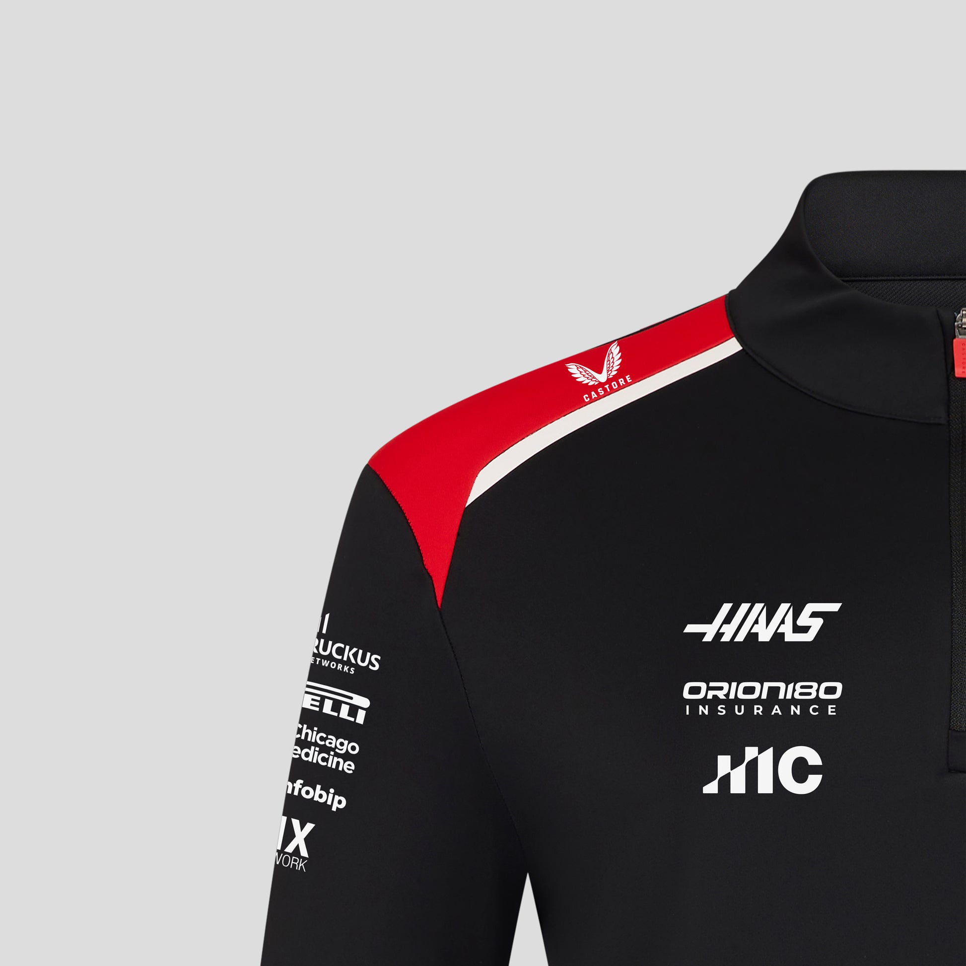 Featuring official Haas F1 Team branding and a bold colour contrast, it’s designed with a quarter-zip neckline for adjustable ventilation and easy layering, making it ideal for casual wear or showing team support throughout the 2026 season.