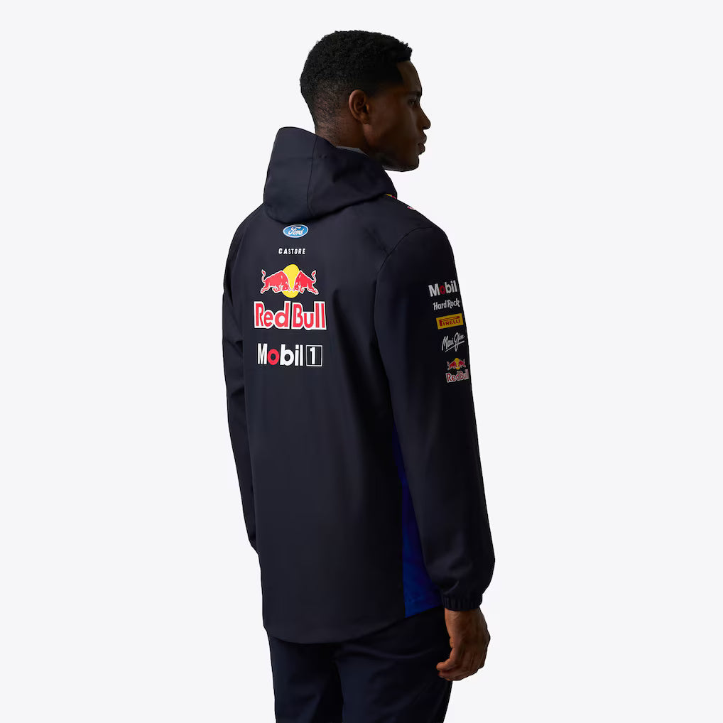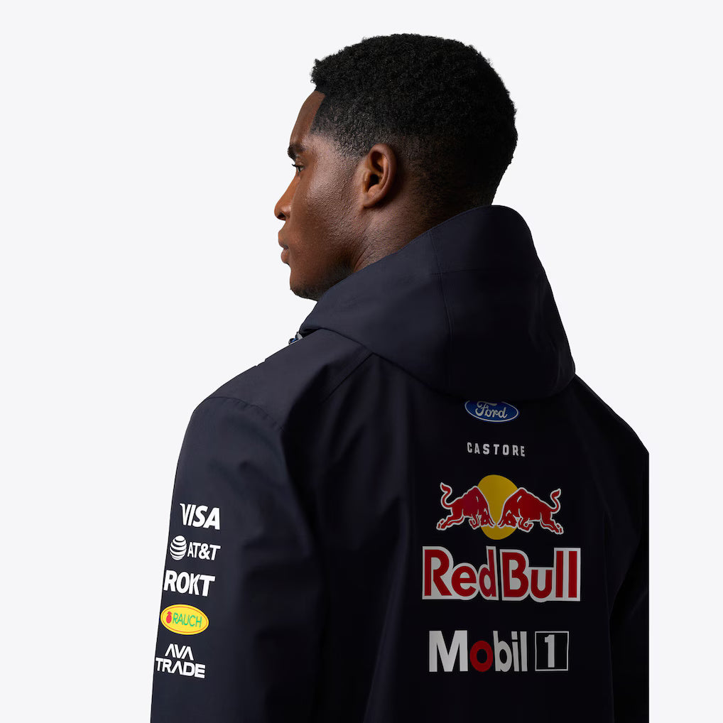 Defy race day rain in the Oracle Red Bull Racing 2026 Team Long Sleeve Water Resistant Jacket. Engineered with ProTek technology for a durable water repellent finish and a peaked hood for added protection, it provides reliable coverage in heavy showers. Finished in a modern colourway, the jacket combines style with bold Oracle Red Bull Racing branding.