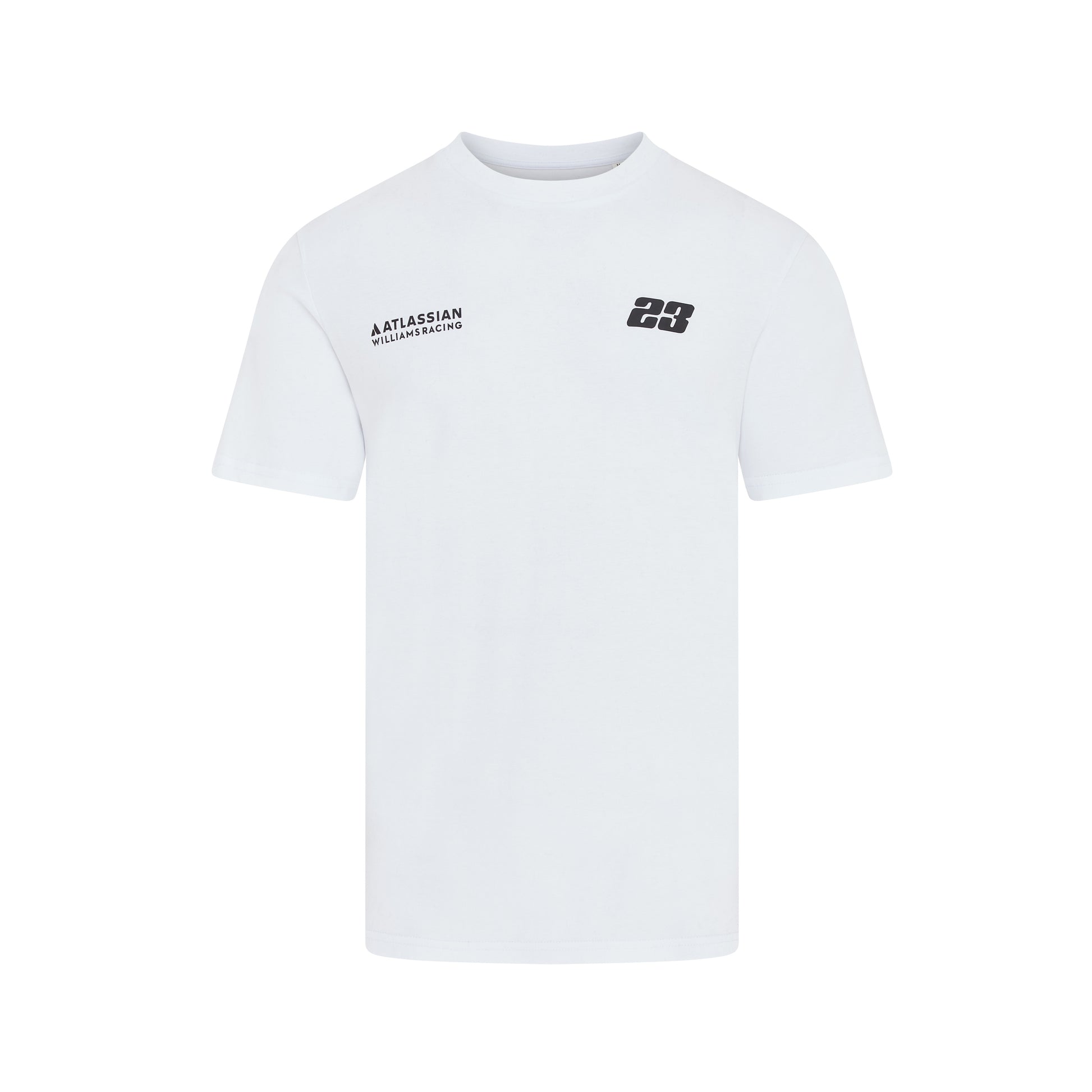 Represent Williams and one of the fastest drivers on the grid with this Williams Racing X REFLO Alex Albon Short Sleeve Tee in White. Showing his racing number 23 on the front and a stylised graphic of Alex on the back, this Tee is a great addition to any fans wardrobe. Using REFLO's recycled plastic fibres, this tee is comfortable, eco-friendly and high-quality. Grab it before it races of the shelves.